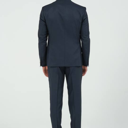 Navy Blue Dark Polka Dotted Slim Fit Suit (1-80688-2)