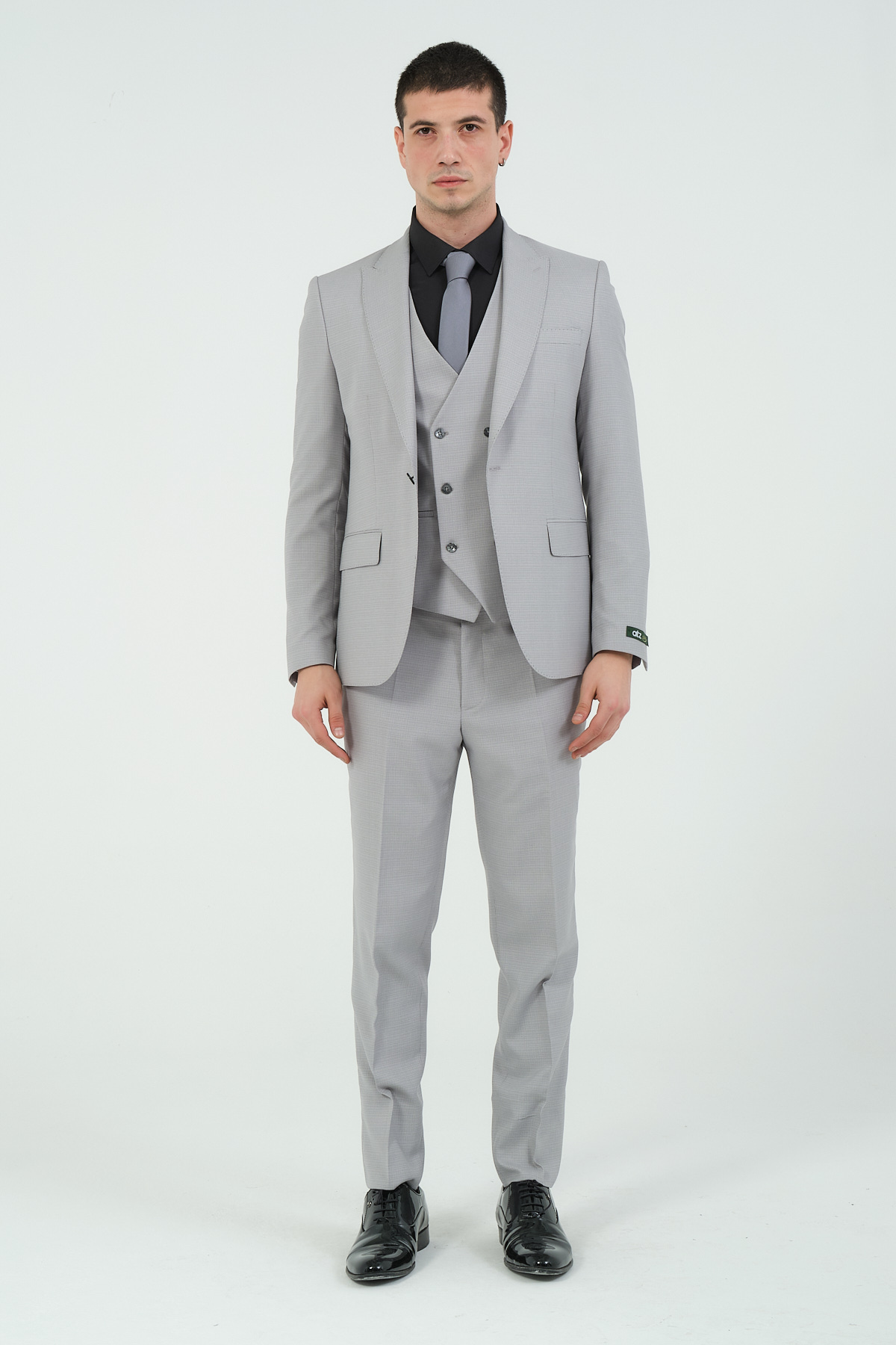 GRİ AÇIK ARMÜRLÜ YELEKLİ SLİM FİT TAKIM ELBİSE (1-30477-1)